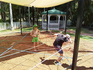 The rope maze involved climbing over and under these low-set ropes giving Graham a natural advantage.